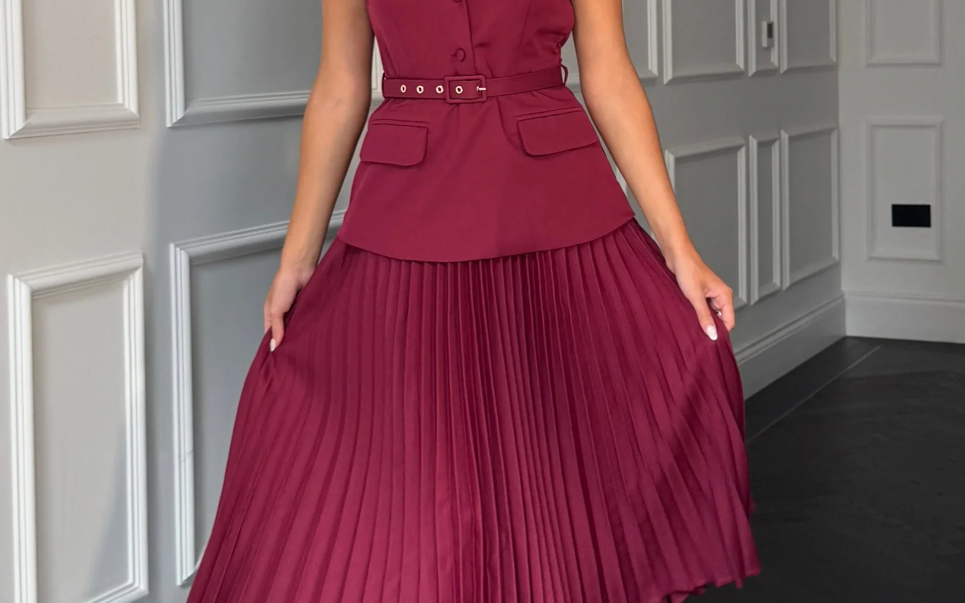 A sophisticated blend of elegance and modern design, the Agatha features a clasic waistcoat design, this dress offers a sleek and refined silhouette. The longline bodice create a flattering shape, while the pleated skirt adds texture and movement. This dress is a perfect choice for both formal events and chic evening outings, combining classic elements with contemporary flair.