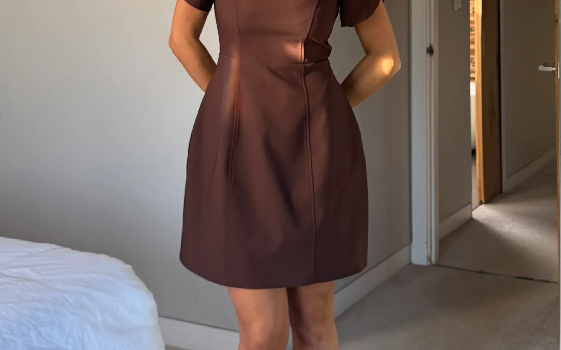 Elevate your style with the Amy Tulip Sleeve High Neck Mini Dress in Autumnal BROWN. A perfect choice for both formal events and chic evening outings. Featuring a refined high neck and structured skirt, this dress offers a flattering mini length that effortlessly balances elegance and charm.