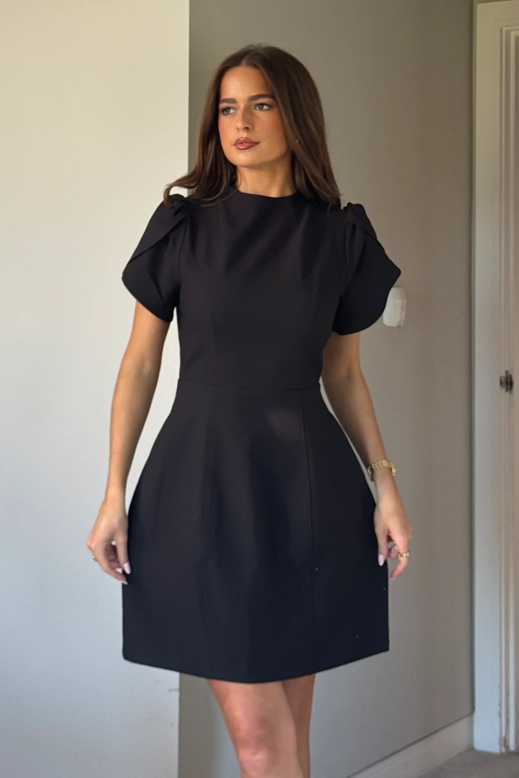 Elevate your style with the Amy Tulip Sleeve High Neck Mini Dress in stunning BLACK. A perfect choice for both formal events and chic evening outings. Featuring a refined high neck and structured skirt, this dress offers a flattering mini length that effortlessly balances elegance and charm.