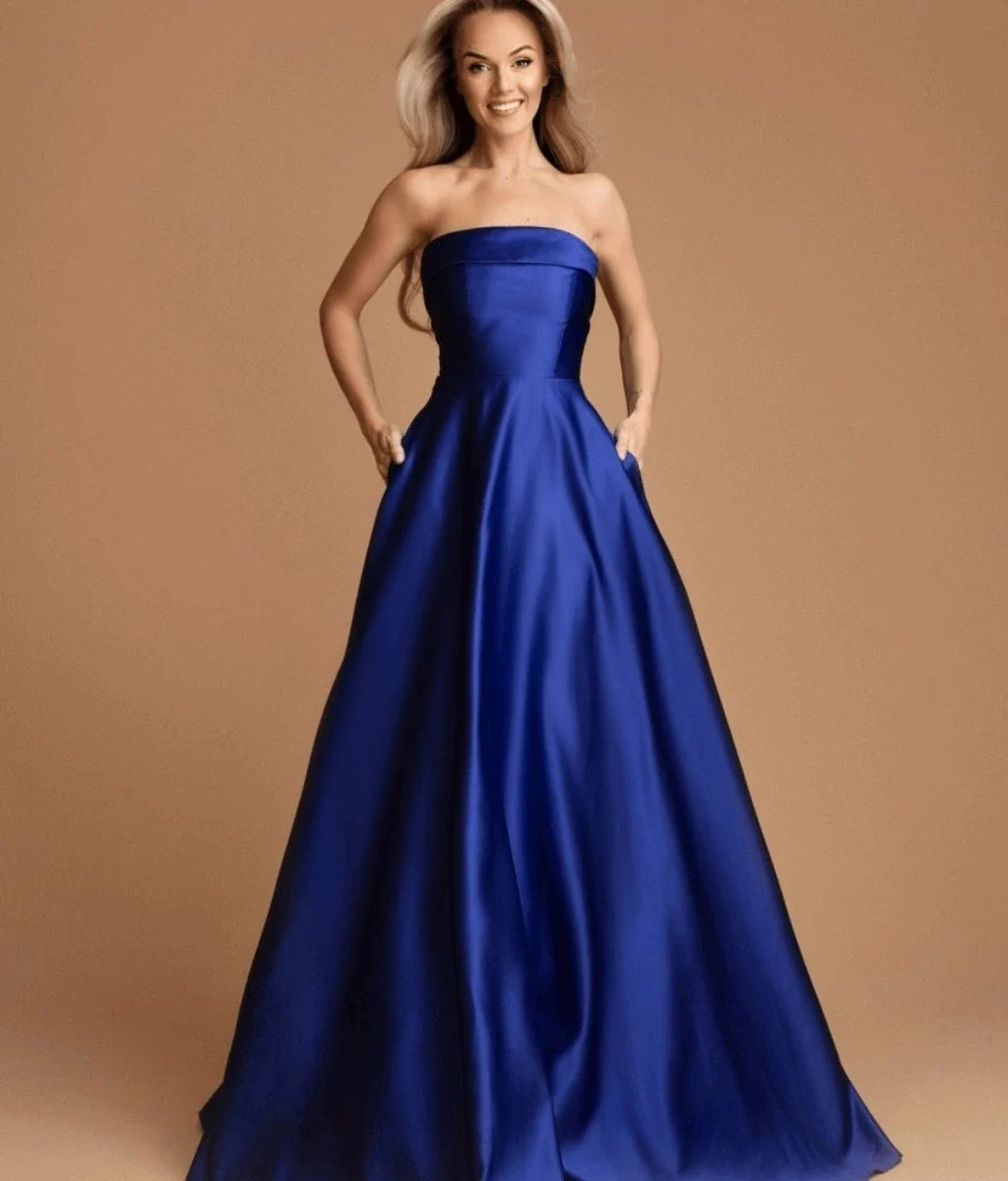 You’ll be the belle of the ball in our Arabella Strapless full-length Gown in Royal Blue. This beautiful Satin dress with lace-trimmed corset that can be adjusted at the back to ensure it fits you perfectly. Also features pockets and multi-layered skirt that holds its’ shape beautifully while you dance the night away.