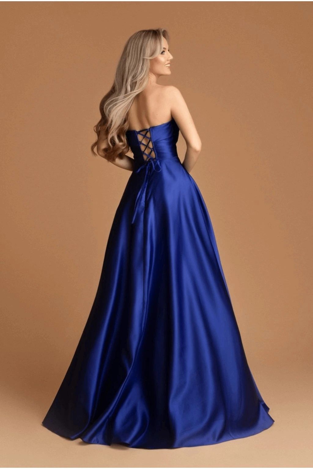 You’ll be the belle of the ball in our Arabella Strapless full-length Gown in Royal Blue. This beautiful Satin dress with lace-trimmed corset that can be adjusted at the back to ensure it fits you perfectly. Also features pockets and multi-layered skirt that holds its’ shape beautifully while you dance the night away.