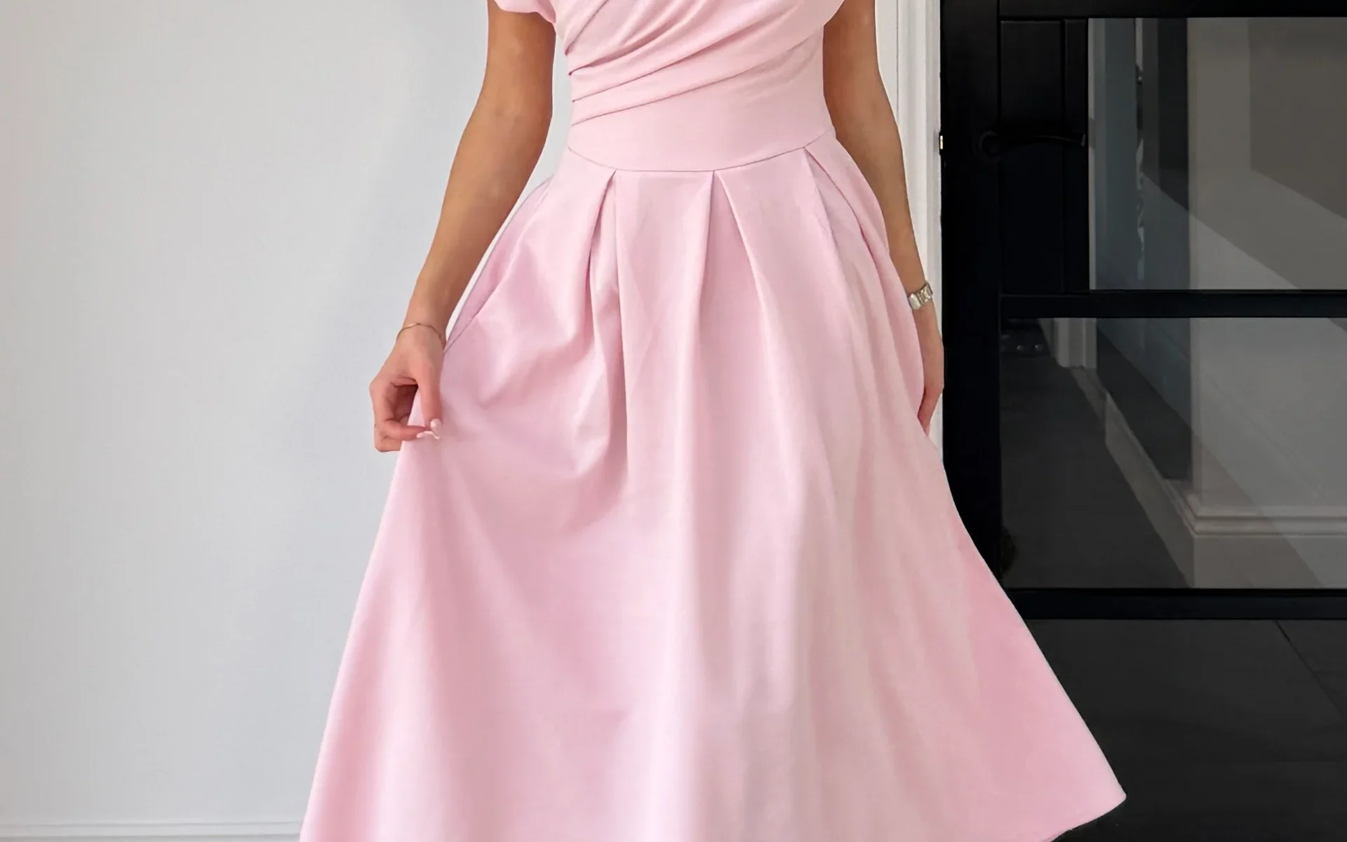 Experience modern elegance with the Betty Asymmetric Neckline Midi Skater Dress. This classic, statement piece in PINK is crafted from the highest quality materials for a luxurious feel. Its unique asymmetric neckline provides visual interest, while the sleek skater skirt silhouette flatters the figure, creating an exquisite look that will never go out of style.
