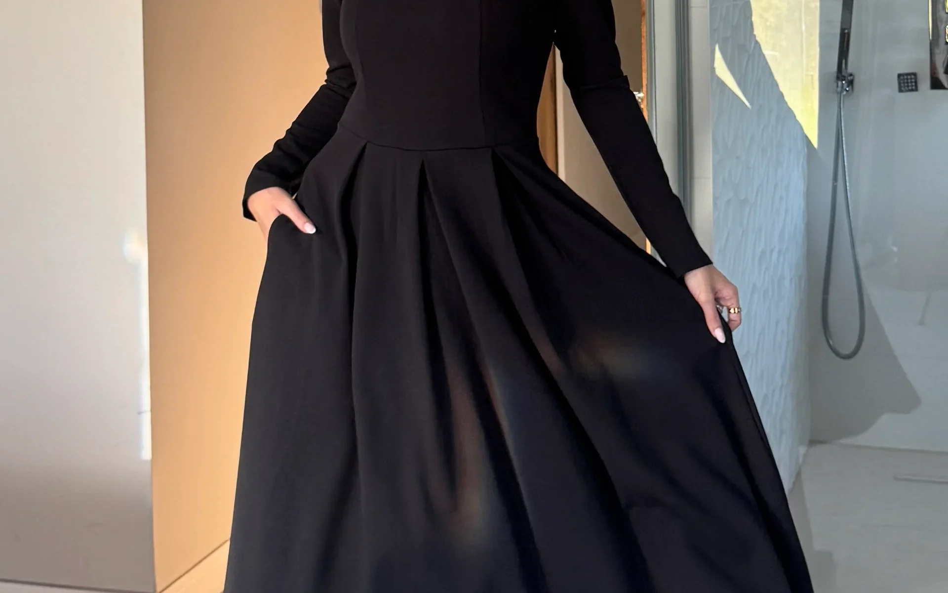 Step out this Autumn/Winter season in ultimate style in our Evie Square Neck Midi Dress. Crafted from our premium scuba crepe, this BLACK midi dress is designed to sculpt and smooth while offering a polished silhouette. The structured square neckline and long sleeves create a timeless, tailored feel, while the softly pleated skirt adds graceful movement with every step. Perfect for elevated occasions or sophisticated evenings.
