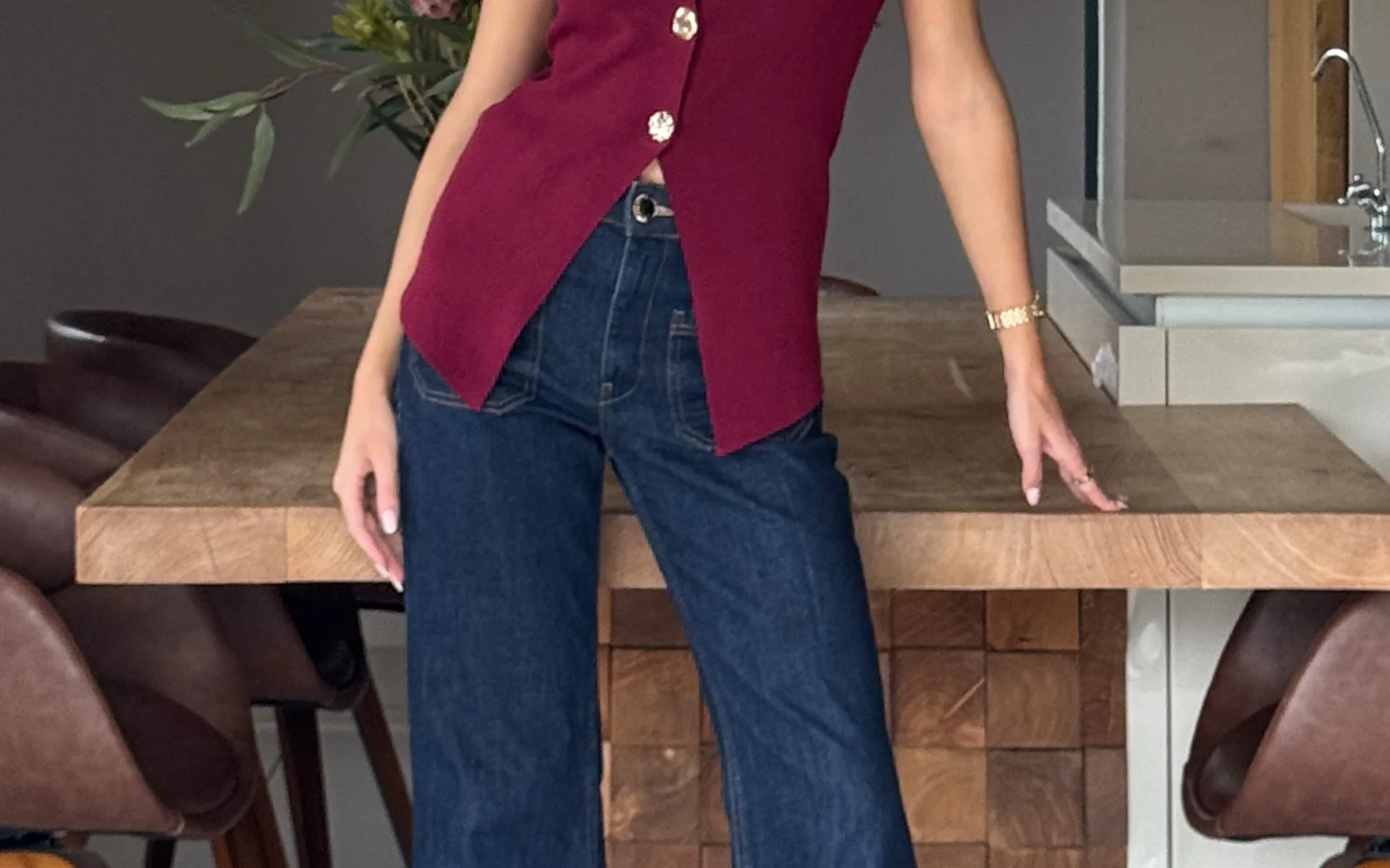 Stylish yet relaxed, the Harmonia Knitted Waistcoat in beautiful Berry is perfect for those Autumn days. Featuring a statement button and classic design, this timeless piece blends cozy comfort with a cheeky charm. Perfect for layering or standing out on its own, it’s your new go-to for adding a pop of personality to any outfit.