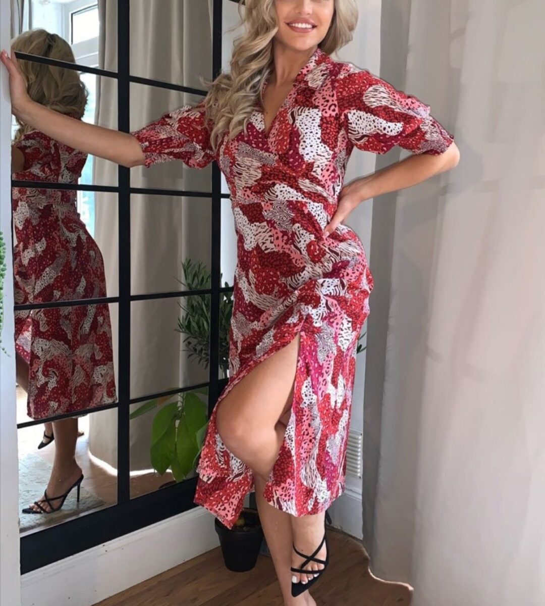 Stand out in our stunning Katie dress. Featuring a shirt collar, short elasticated sleeves, a wrap neck, cinched waist, side split and side zip. Pair with heels and a clutch for all your upcoming occasions.