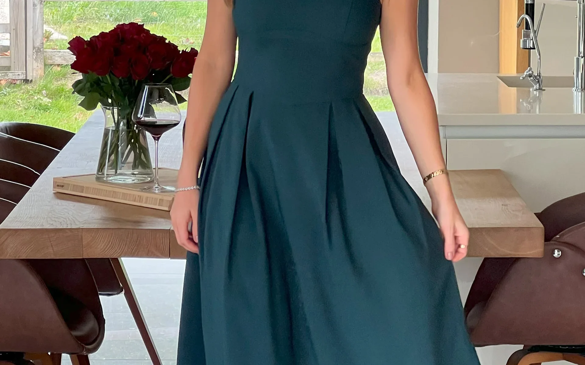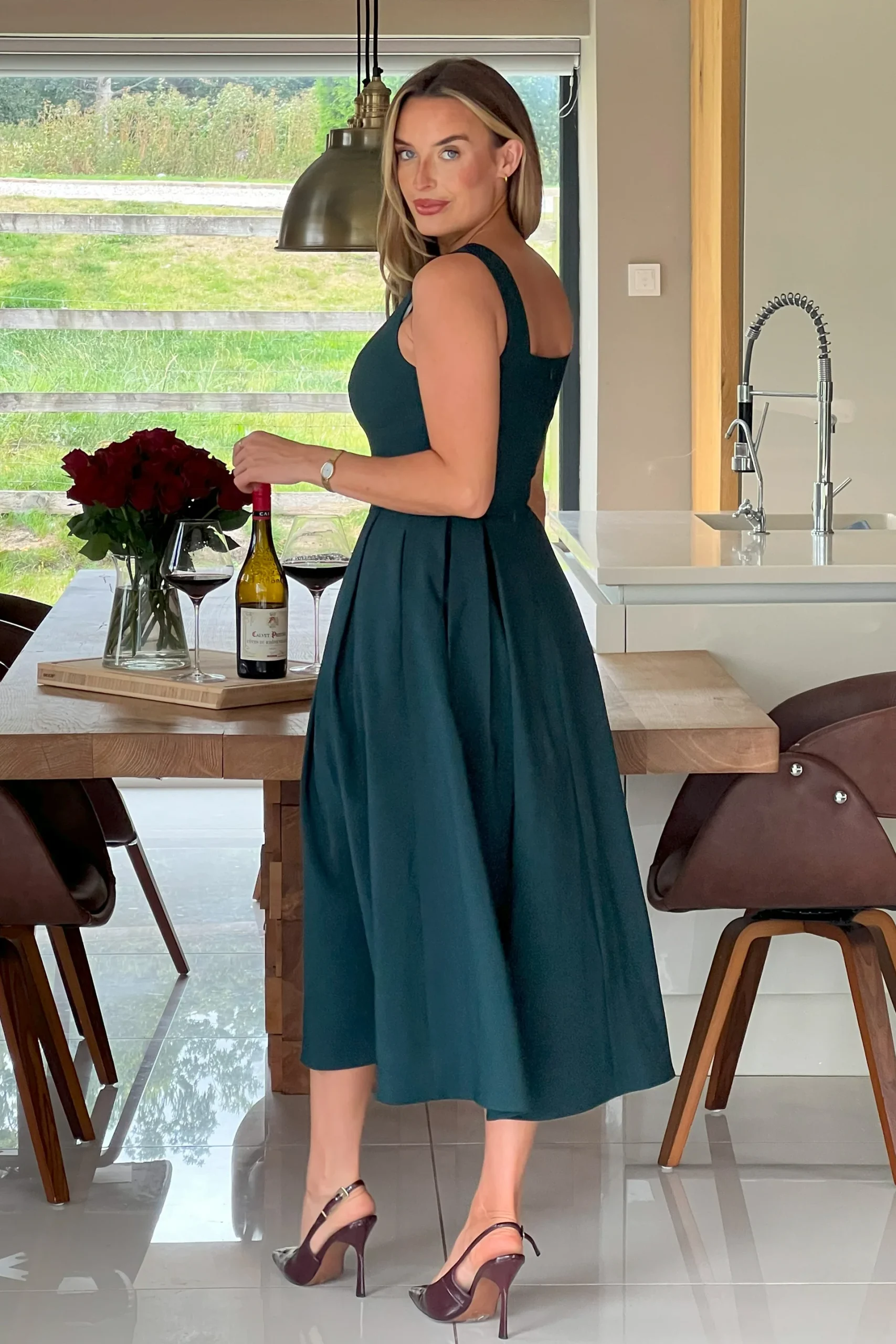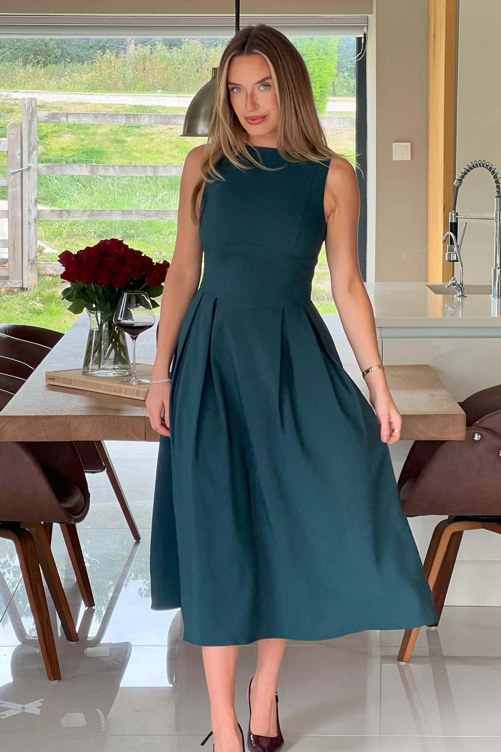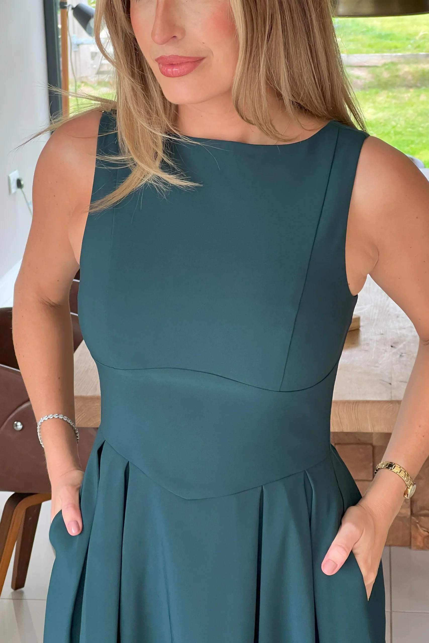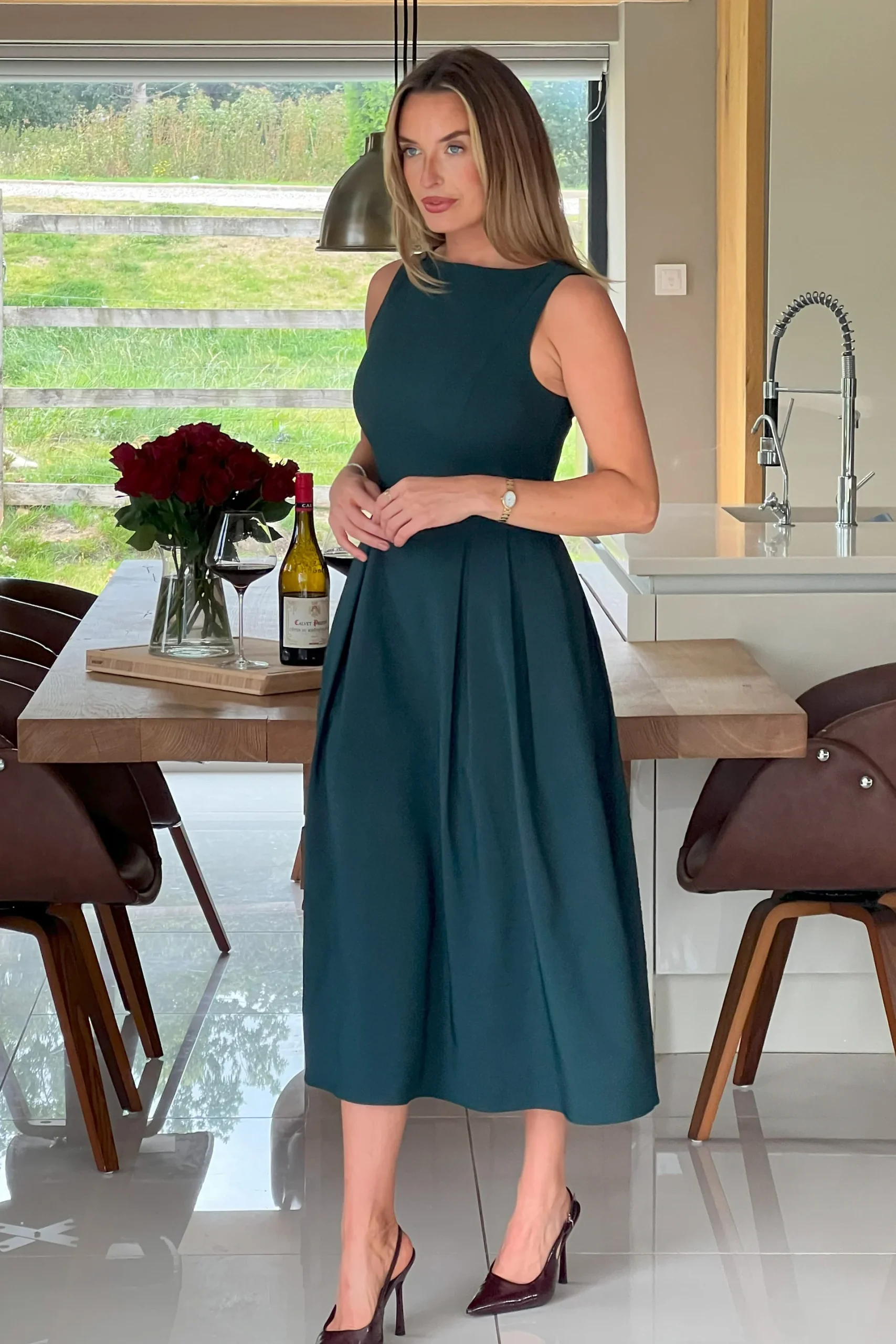 The Nesta Boat Neck Skater in GREEN is the perfect dress for any occasion this Autumn. Crafted in a premium stretch fabric, Nesta effortlessly compliments every body. Beautifully flowing with a cinched in waist, this midi dress boasts a pleated skirt that creates an elegant sense of movement.