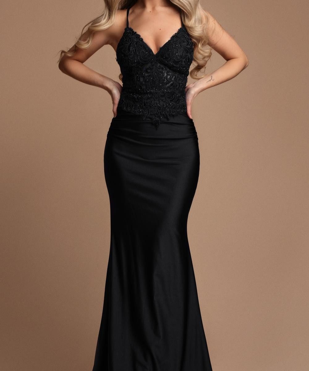 The Reneé Maxi Dress in stylish Black is sure to turn heads. Its’ sleek figure enhancing cut and stylish fitting will emphasise & enhance your figure perfectly. Featuring a beaded embroidered shimmery bodice.
