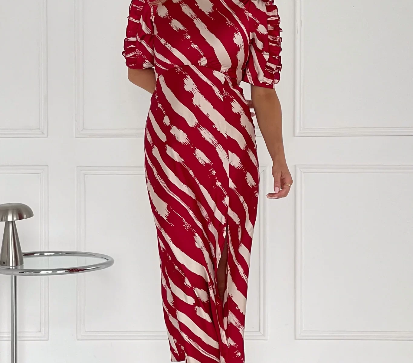 The beautiful Samira midi dress in a gorgeous WINE print will fast become your new go-to for any occasion this season. Featuring a frill sleeve detailing and a side skirt slit for a chic look. Pair with your favourite heels for a super sophisticated look.