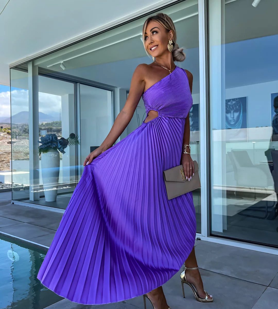 Make a splash this Summer in our Tina One shoulder Midaxi. This stunning dress is sure to turn heads no matter what the occasion. Featuring a key hole detail at side and a flowing asymmetric pleated skirt.