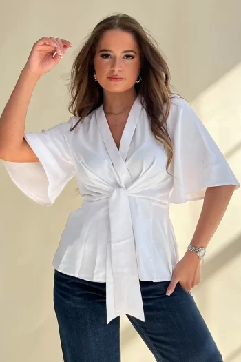 Our Winona tie detail top is the perfect addition to your wardrobe with its versatile design and relaxed fit. Featuring a wrap over neckline and tie detail at the waist to cinch you in, this top creates the most flattering & feminine silhouette. This statement staple is the style you will wear on repeat.